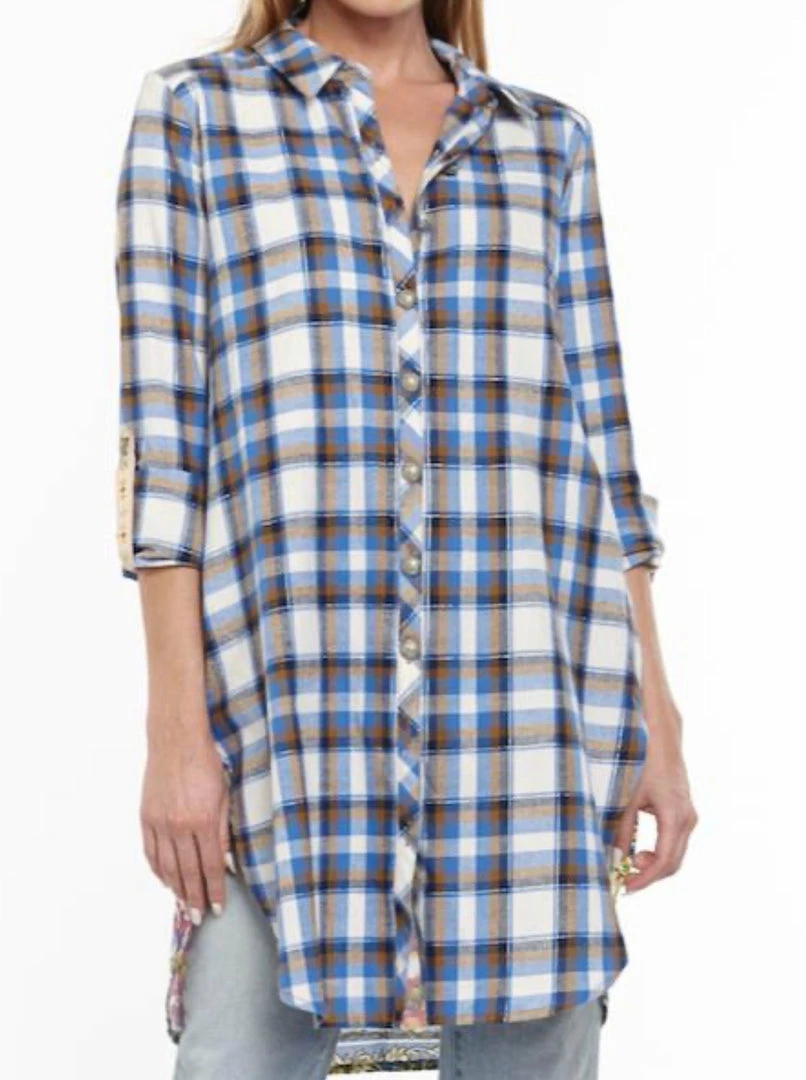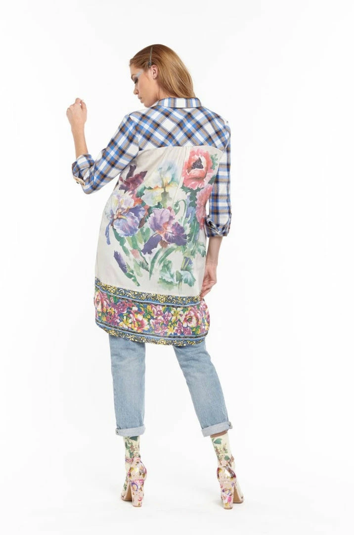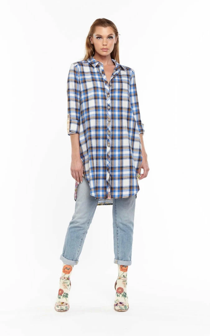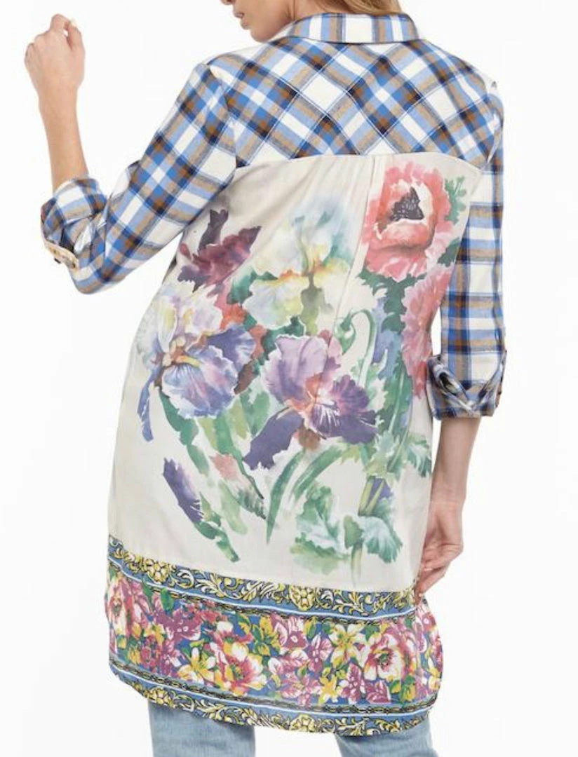 This blue ombré tunic with the floral/plaid contrast is perfect!