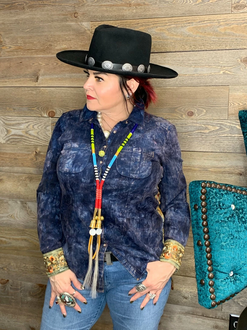 Beautiful button up blouse with long sleeves and gorgeous embroidery detail.