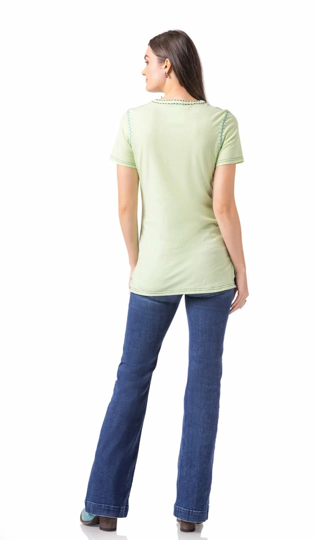Β We love a good graphic tee and ours usually carry some sort of significance to us, be it a person, place, or memory. Invitationals are always an exquisite adventure; they exhibit some of the most exceptional artists and artisans in their craft and itβs awe-inspiring to be in the midst of so much talent. This V-neck tee is a subtle nod to that, on a soft spring green tee embellished with embroidery and contrast stitching.