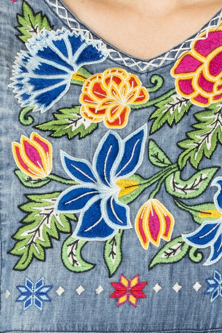 Y’all know we live for – and live IN – our DDR ponchos. Well, we went a little outside the box with this one, and it is… *chef’s kiss*! We created the Ynez Poncho in a lightweight denim tencel and reined it into a more structured silhouette and brought it to life with scaled-up vibrant Olinala-inspired folk art floral embroidery. Tell me you’re not just dying to get this on with your favorite white jeans or skinnies!