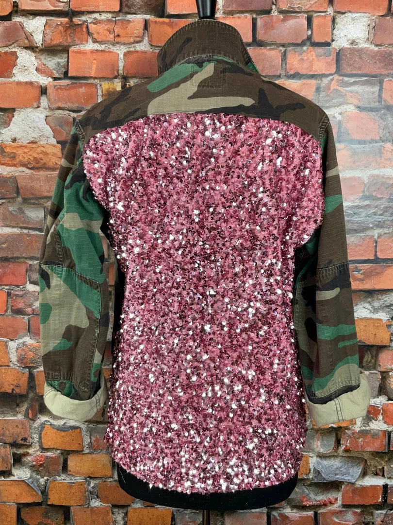 Individually made. Β One of a kind. Β Solid pink sequin back.