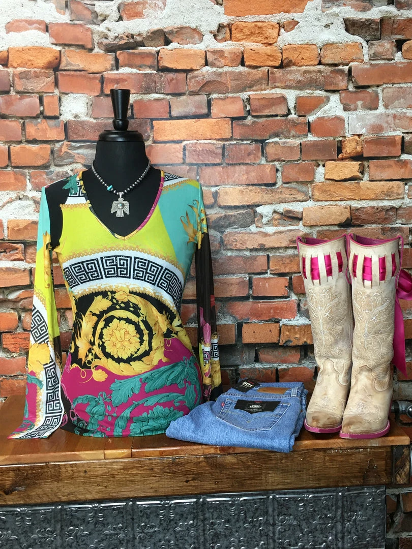 Show your style in this beautiful, cool, mesh top that is full of color and design.