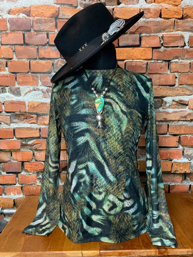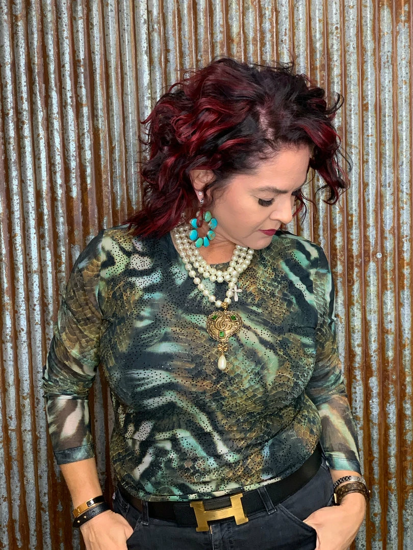 Let your wild side show in this cool, mesh, animal print top. ย Great for casual or a night out.