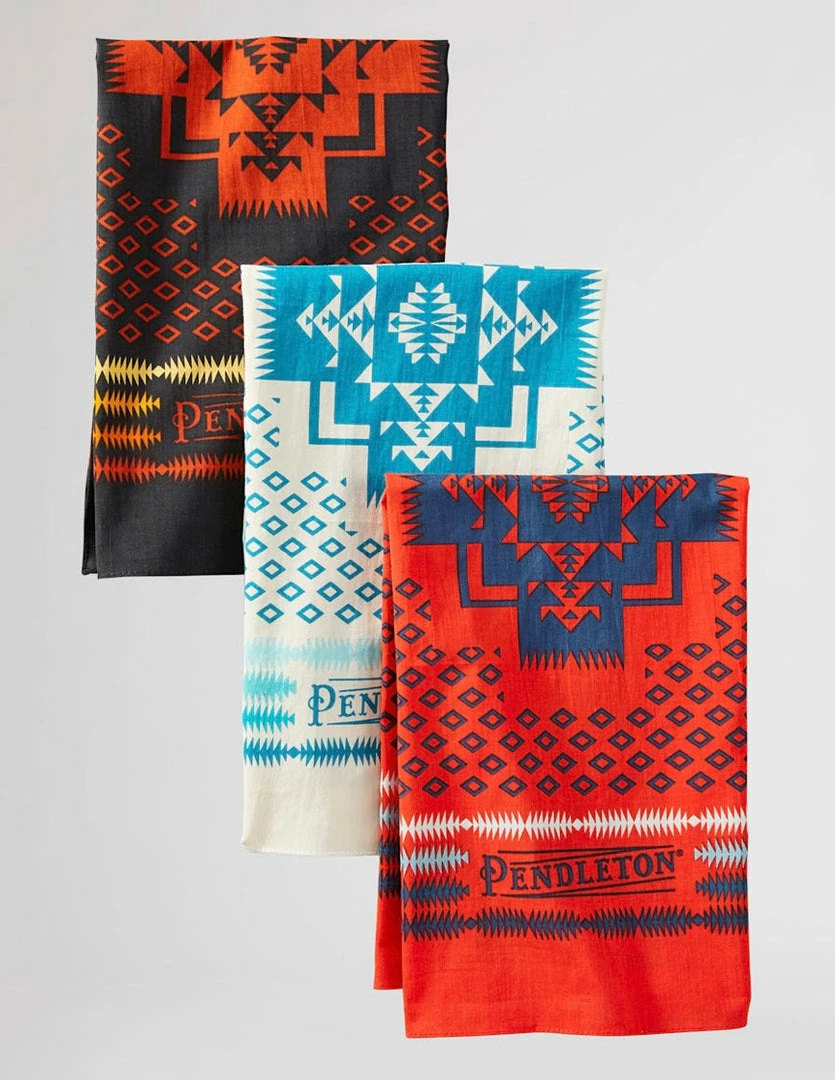 A trio of standard-size bandanas woven of durable recycled cotton that gets softer with each washing.