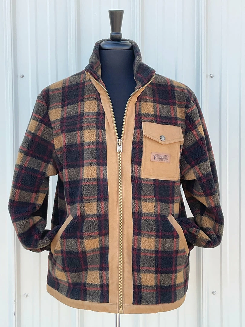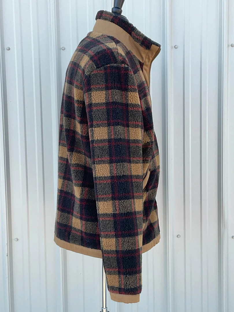 Warm Bereber fleece jacket with Big Sky Canvas trim. Zip front, two angled welt front pockets, one snap chest pocket, one interior pocket.