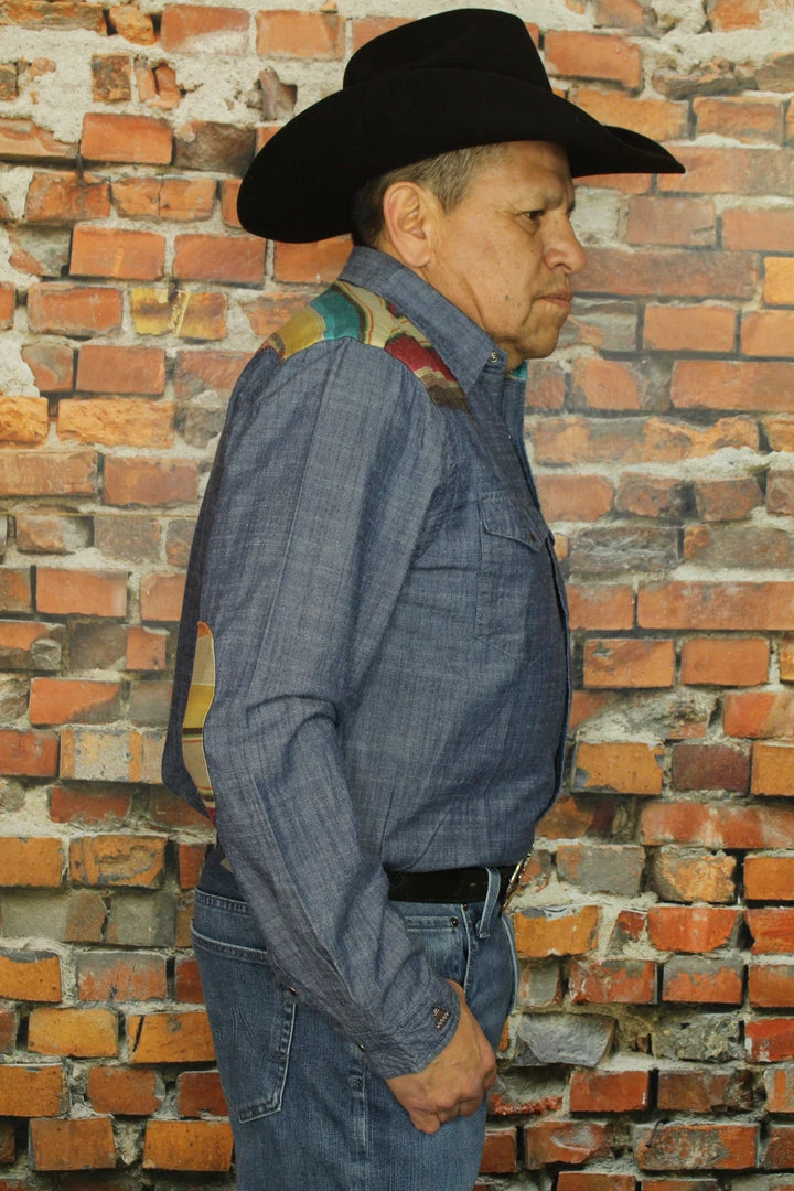 Tasha Polizzi Menβs Hank Shirt washed denim with serape trim. Β