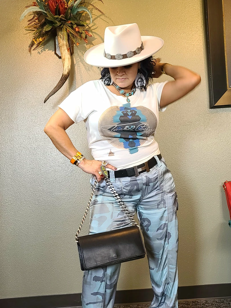 Tasha Polizzi’s graphic tee. Love the soft colors of this tee. Pairs beautifully with the Lydia Skirt.