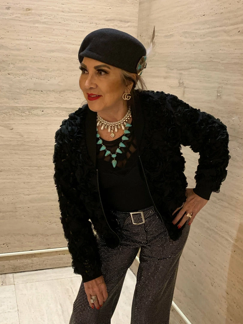 Beautiful and stunning rosette jacket with peekaboo leopard underneath! Great date night jacket with your sweetheart!