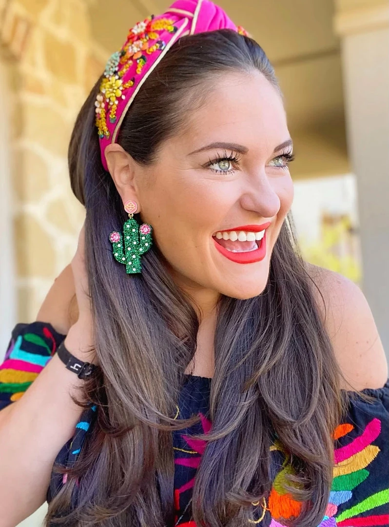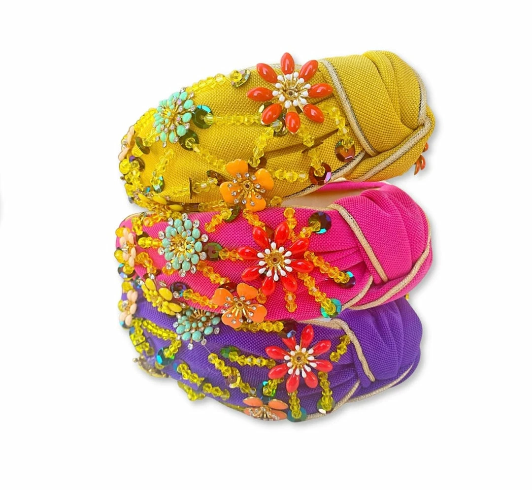 - Knotted headband with multicolor flowers, jewels, and crystalsย