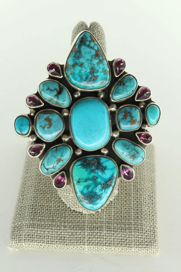 - Multiple shapes & sizes of Turquoise stones with teardrop Amethyst accent stones make this ring a must have in your collection.