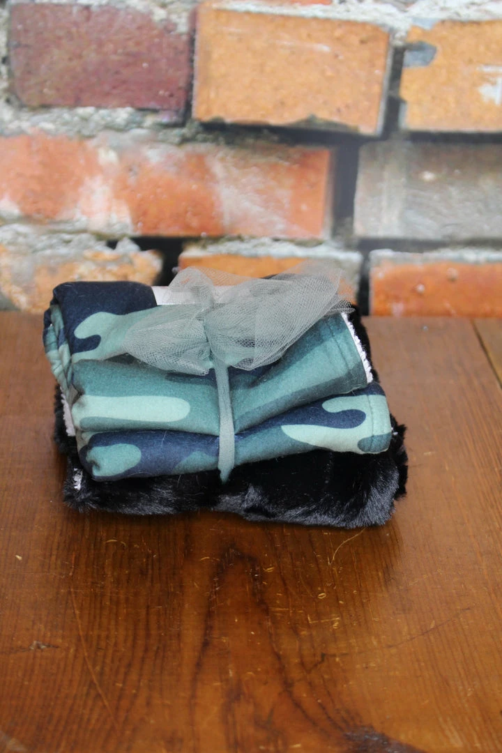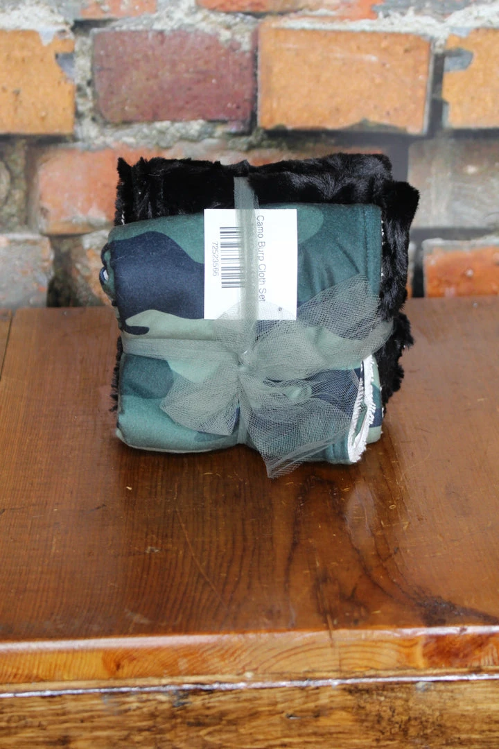 Plush Burp Cloth set of 2 in coordinating prints. These sets are backsd with thick terry cloth material for optimal absorption. These Rockin Royalty Burp cloth sets make wonderful baby gifts.
