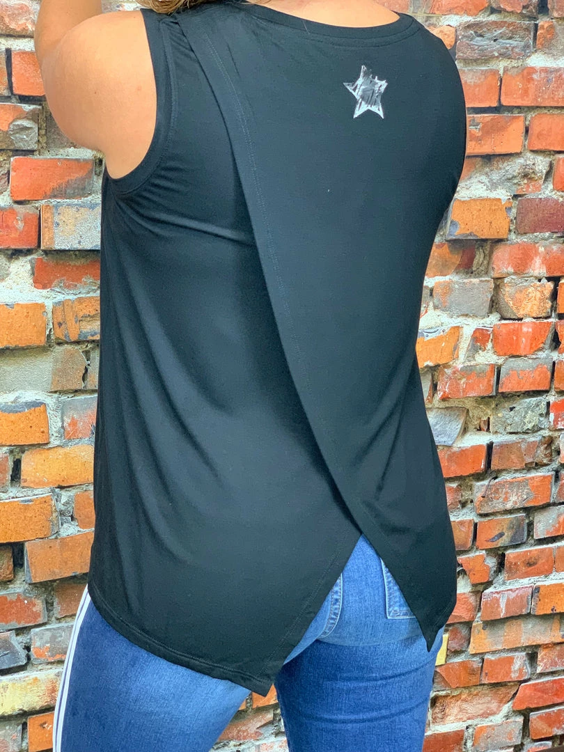 How adorable is this tank? The “Dream Hunter” tank by Words Count, is perfect for those warm sunny days or paired with your favorite jacket! Crew neck, with a super cute tulip back.